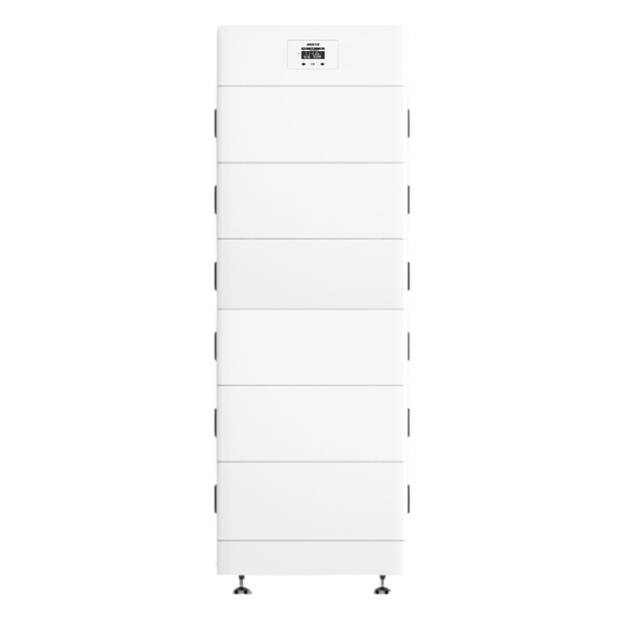 Konfigurácia A24 prináša výrazne vyšší výkon aj kapacitu pre rezidenčné FV systémy. Vysokonapäťový blok (460 V) ďalej znižuje prúdy v DC časti a minimalizuje vedené straty. Trvalý nabíjací aj vybíjací výkon 11,5 kW bez problémov zvládne nárazové odbery väčších domácností, kým BMS priebežne vyrovnáva články a stráži bezpečné limity prevádzky. Zostava je tvorená 6 batériovými modulmi, čo uľahčuje inštaláciu a servisné zásahy.
