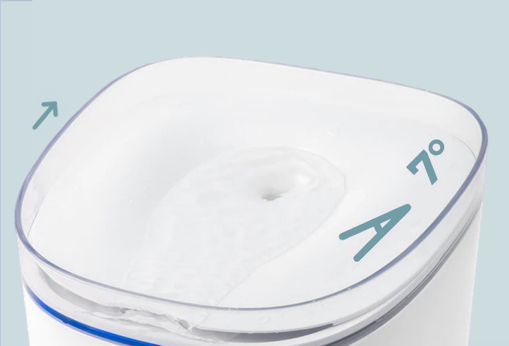 Technológia filtrácie vody inšpirovaná horským potokom zaručuje, že váš domáci miláčik bude mať prístup k dostatočnému množstvu sviežej, čistej vody kedykoľvek počas dňa aj v noci. 7° uhol umožňuje vašim miláčikom pohodlne piť v prirodzenej polohe bez namáhania chrbta.