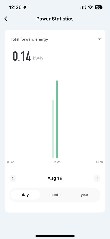 Poskytuje prehľadnú štatistiku spotreby energie. Graficky zobrazuje denné, mesačné alebo ročné údaje o spotrebe. Je možné sledovať celkovú spotrebu "doprednej" energie (total forward energy).