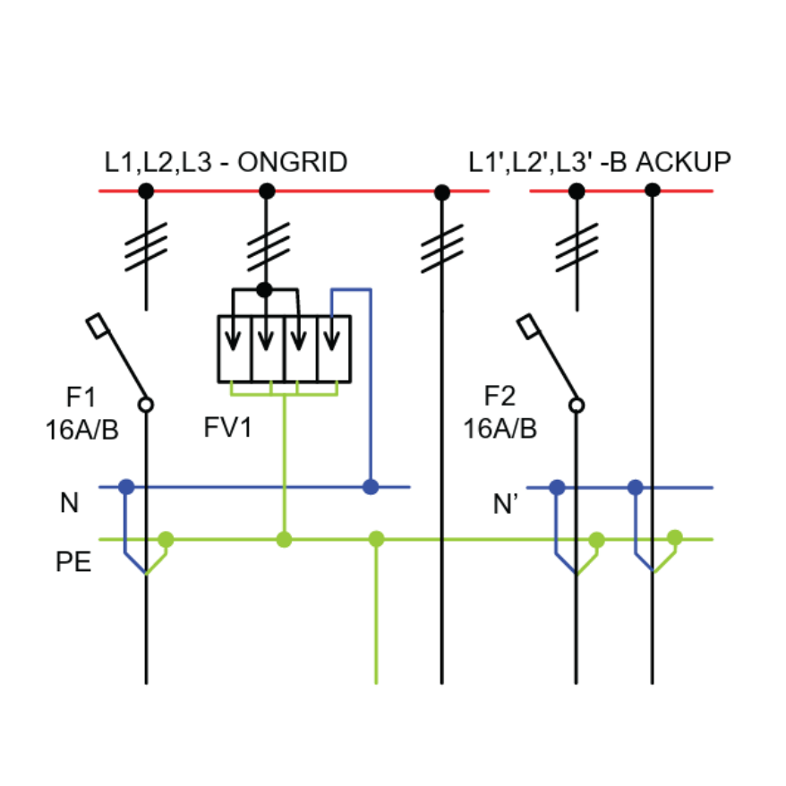 - F1 – ONGRID vetva: istí a umožňuje odpojenie pripojenia do distribučnej siete.
