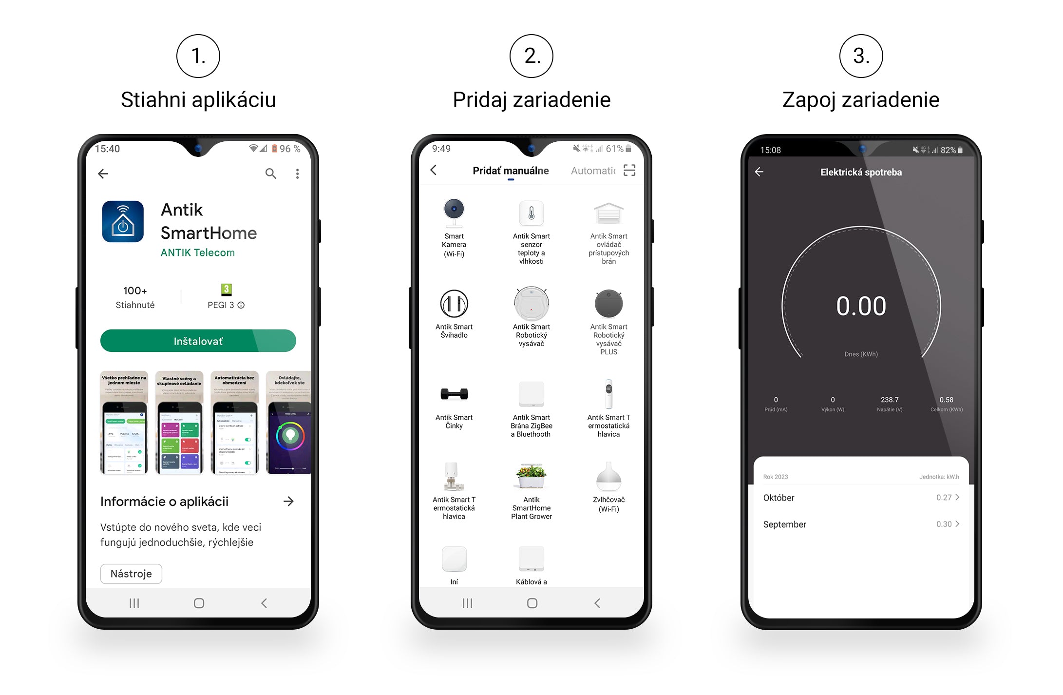 Funkcia monitorovania spotreby energie je nápomocná pri identifikácii energeticky náročných zariadení a hľadaní spôsobov, ako znížiť účty za elektrinu. V aplikácii Antik SmartHome® sa detailne zobrazujú aktuálne aj historické údaje o spotrebe energie, čo vám umožní mať dokonalý prehľad o stave spotreby.
