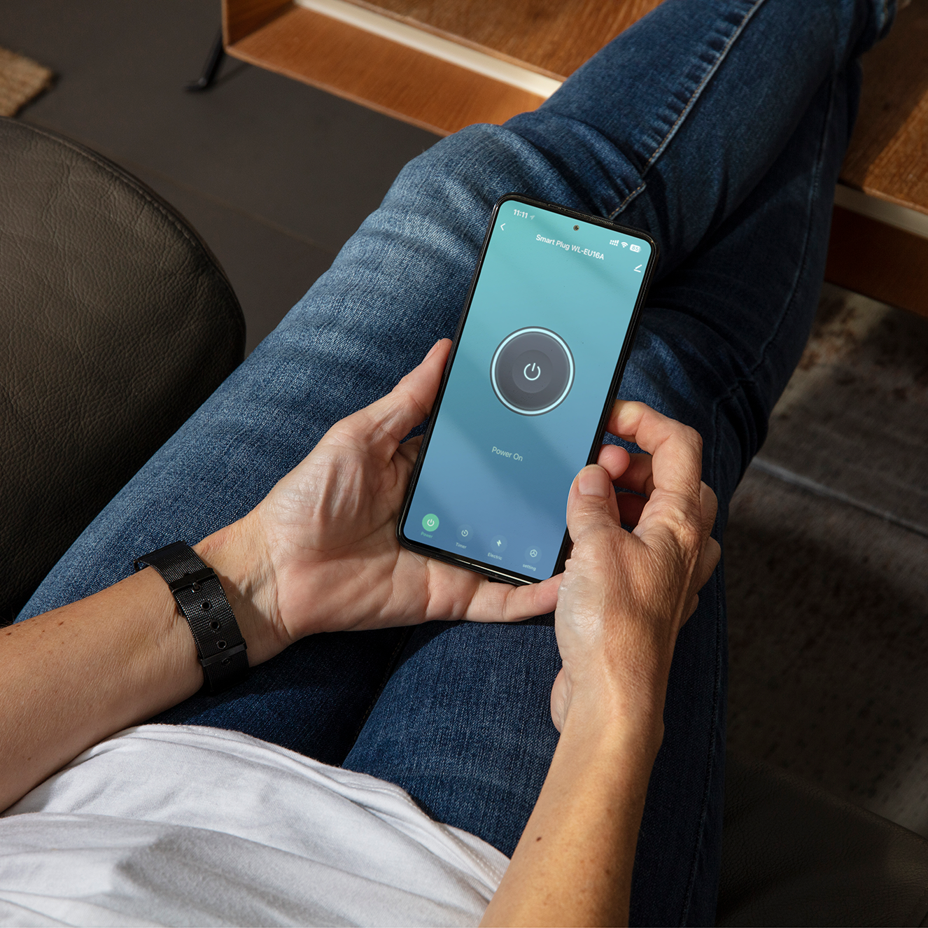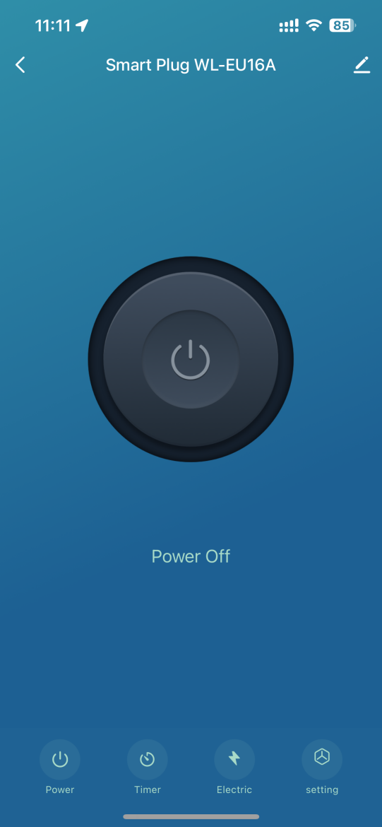 - Zapnutie zásuvky cez centrálny ovládací prvok Power