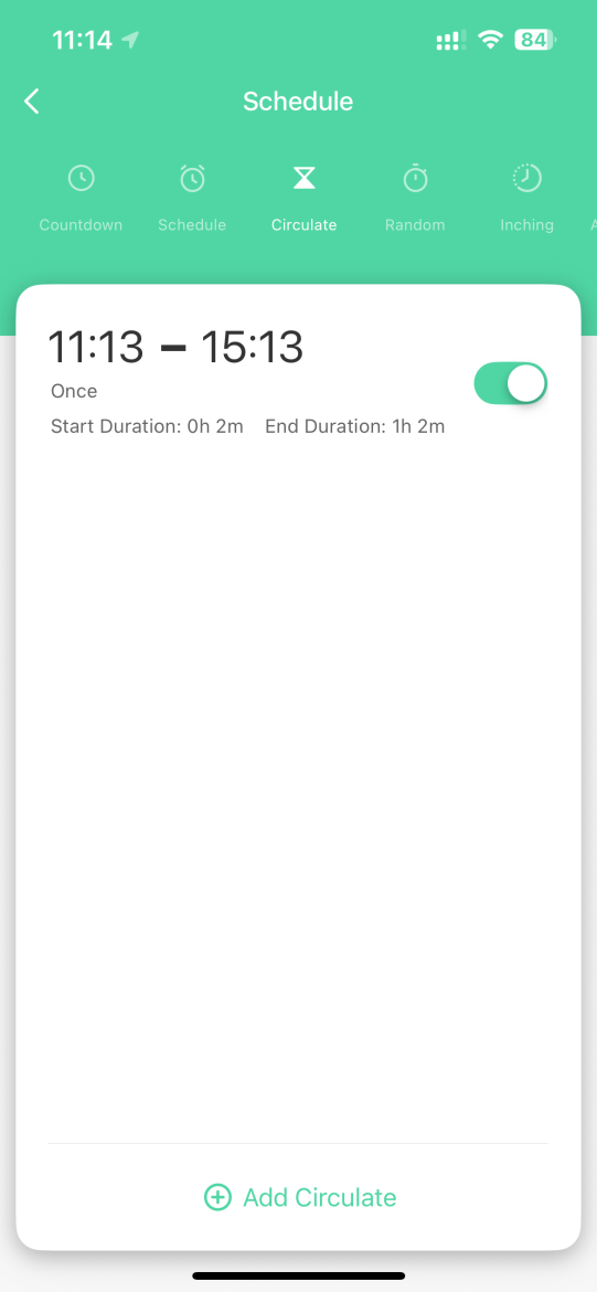 Circulate je vhodný pre režimy vyžadujúce stabilný rytmus zapínania a vypínania.