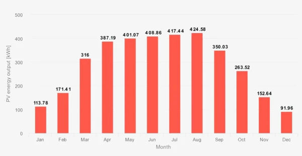 Objem vyrobenej energie záleží na rôznych okolnostiach. Priemerne však sada s výkonom 7.65 kWp môže vyprodukovať približne 8263kWh ročne.