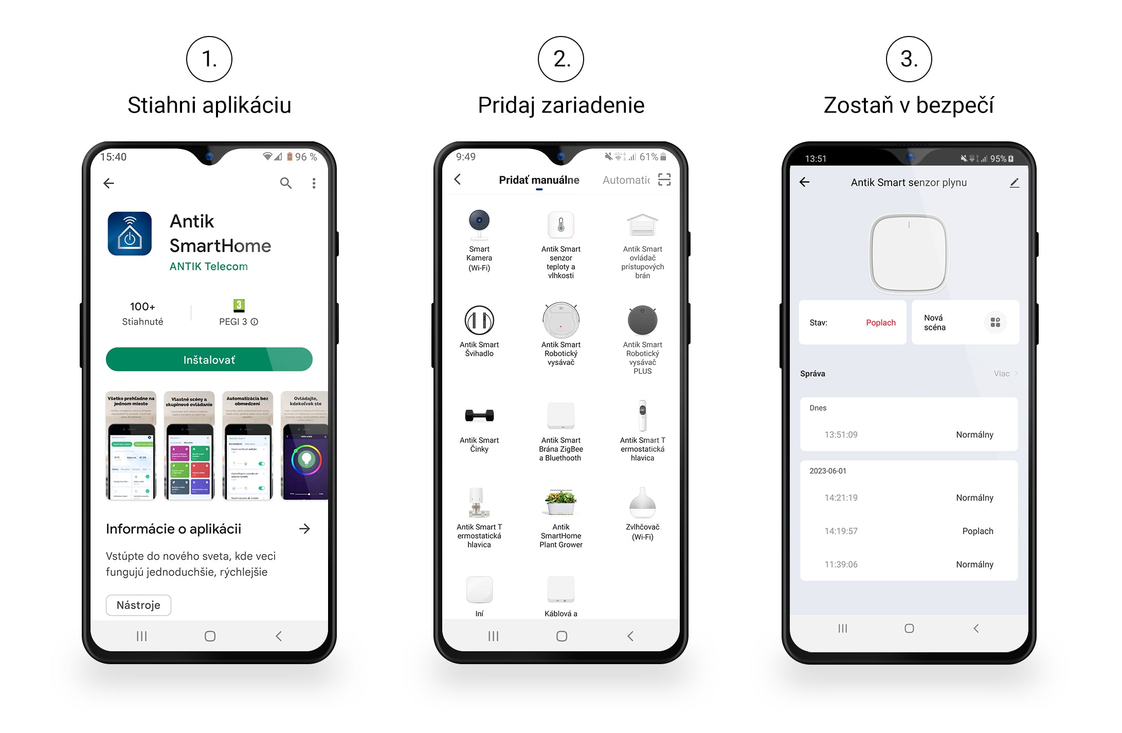 Díky mobilní aplikaci ANTIK SmartHome® o nebezpečí úniku plynu budete informováni rychlou notifikací.