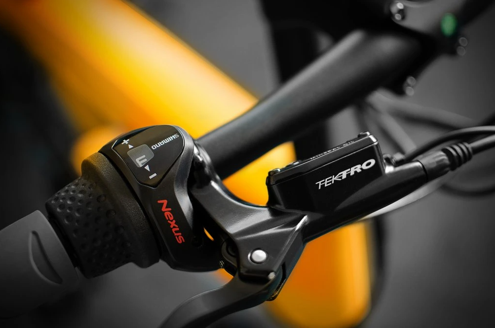 The bike uses Shimano NEXUS , a closed hub gear system with smooth and precise gear shifting.