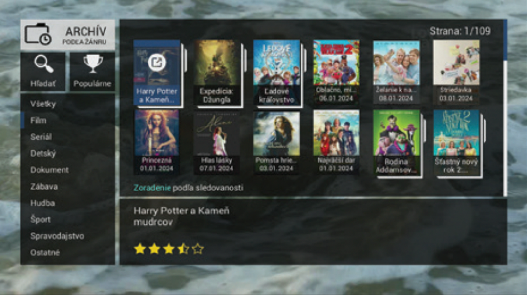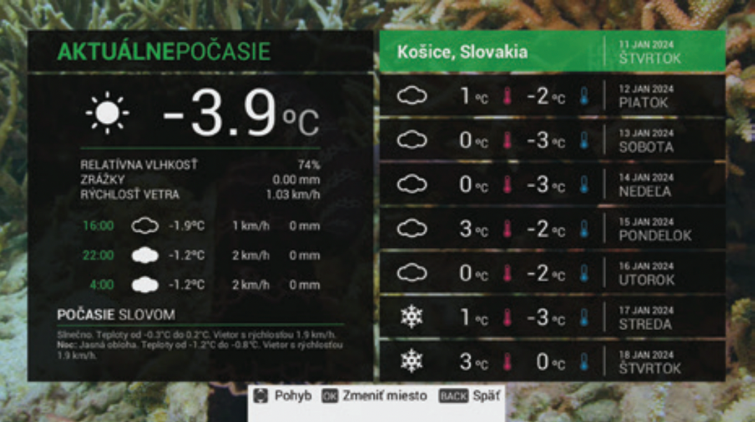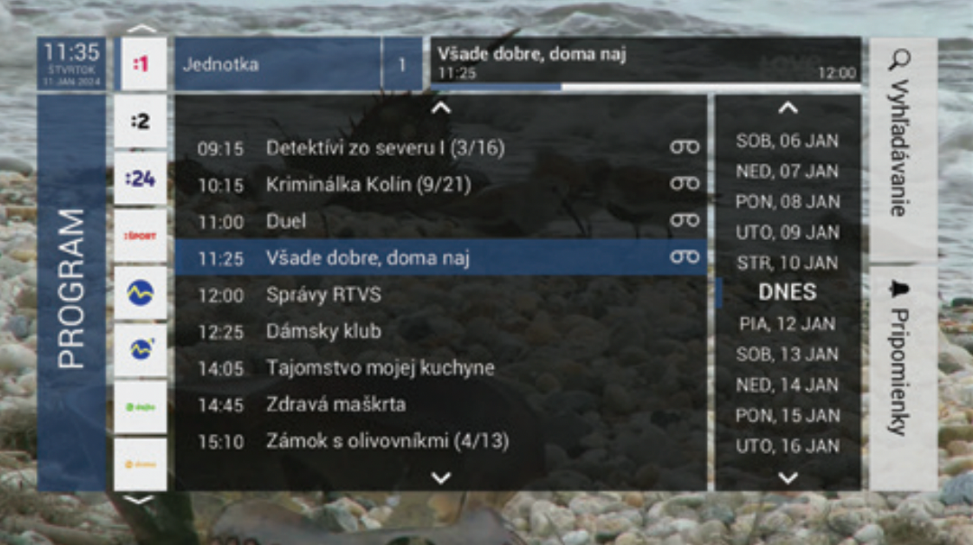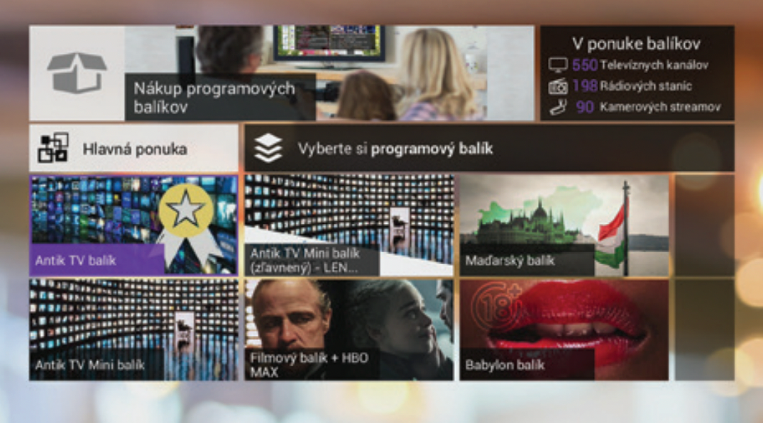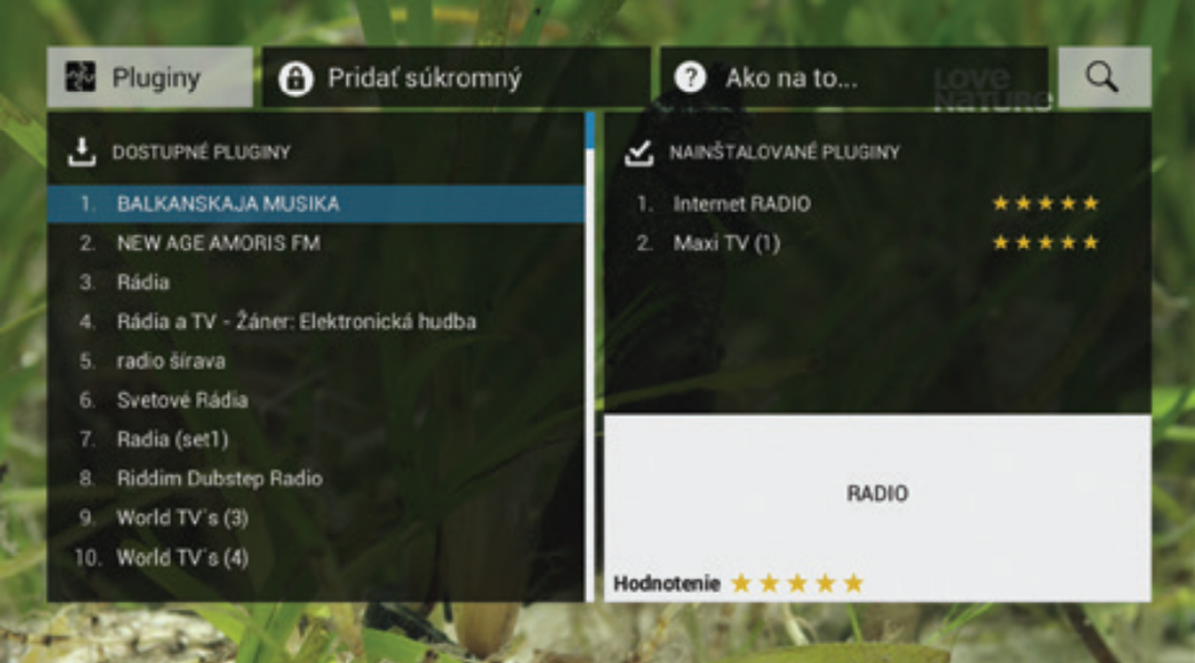The free entry package includes several interesting Slovak or Czech programs. Additional programs can be obtained by purchasing paid packages, including HD or 4K programs. The unique TV Plugin function allows you to add your own video sources and TV channels, such as cameras or internet streams, to the program list .