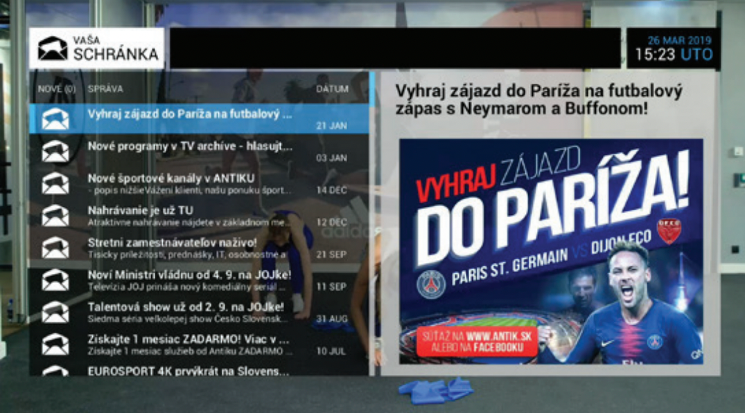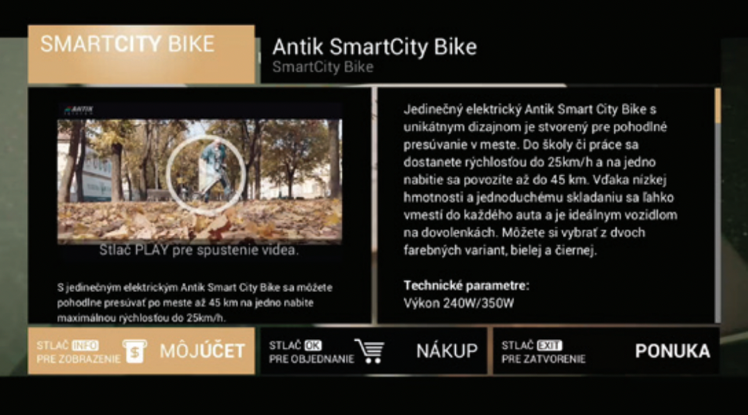 The device allows direct access to Antik IPTV services without the need for an antenna, satellite or cable connection. Users can watch live broadcasts, use the TV archive , TimeShift or plan a program via the electronic program guide (EPG) . Applications such as Podmaz, iKostol.sk, Kukaj.sk and other multimedia platforms are also available. The system provides quick access, automatic updates and supports remote management. Thanks to the intuitive interface, operation is simple and fast.