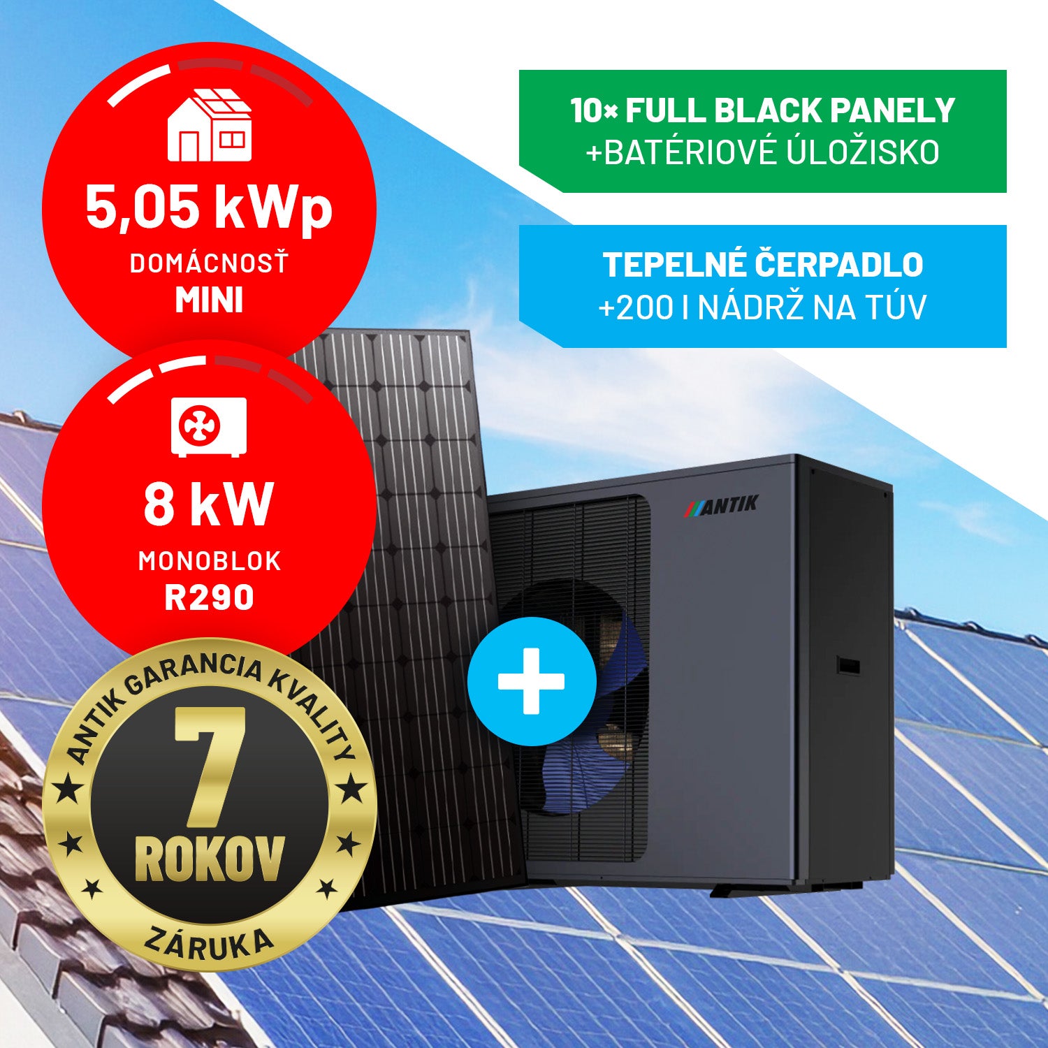 Get a complete ANTIK photovoltaic and heat pump system with up to 70% energy savings. The intelligent connection of solar panels and the pump ensures maximum efficiency, lower operating costs and comfortable living throughout the year.