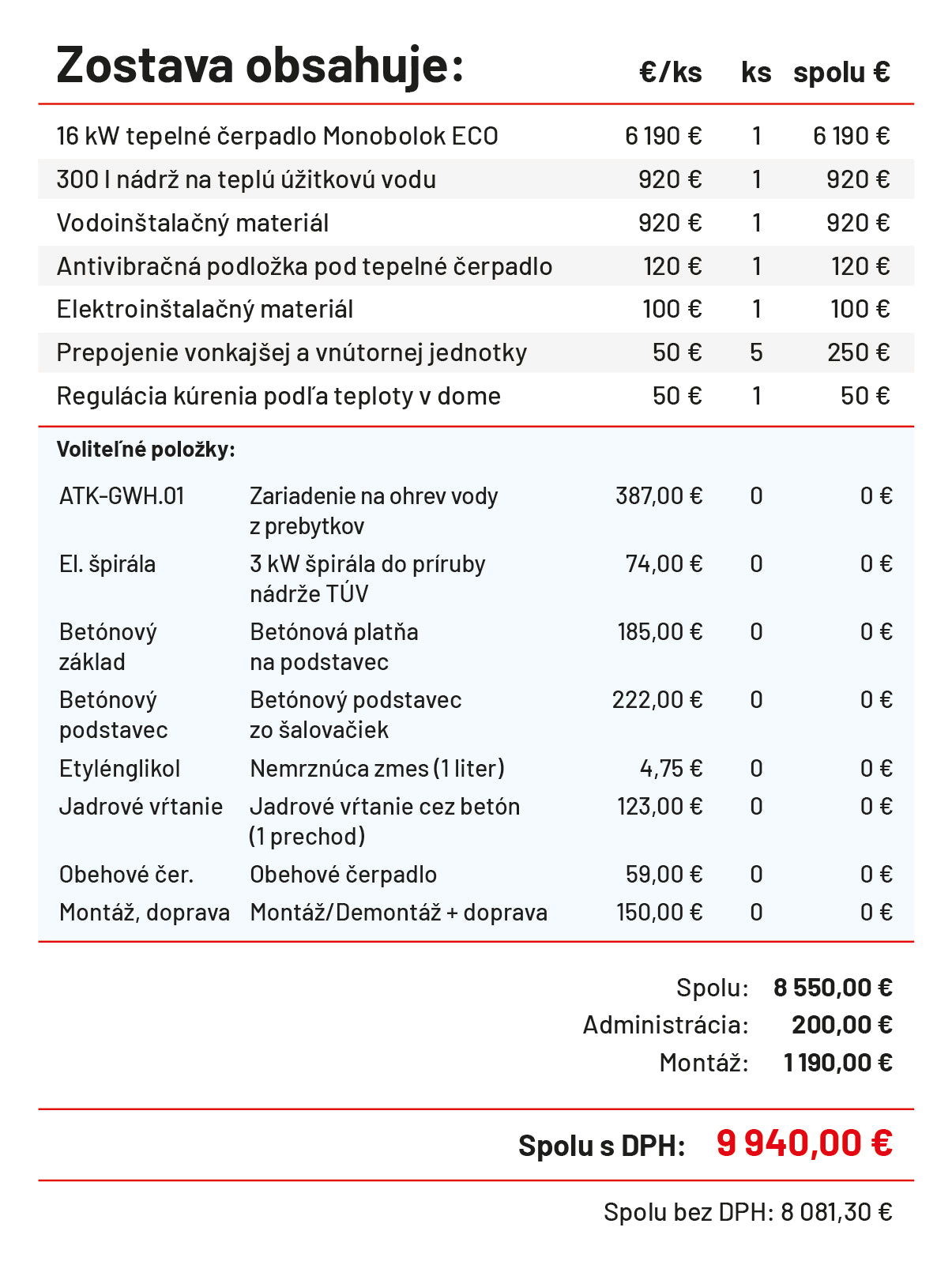Switching to ecological heating no longer has to mean a large initial investment. With the Installment solution from Tatra banka, you can have the ANTIK 16 kW ECO heating system set today and pay it off conveniently monthly - with an interest rate of only 2.99% pa.