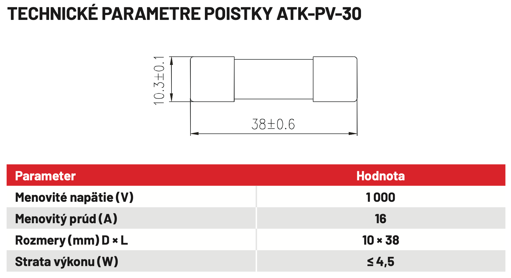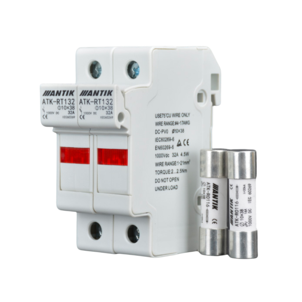 The ATK-RT132 fuse holder is designed for circuits with fuses with a rated DC voltage of up to 1000 V DC and a rated current of 16 A. It is used in series-parallel connection with photovoltaic panels and batteries, where it provides reliable protection against short circuits in charging converters and at the same time protects PV power plants, inverter and rectifier systems.