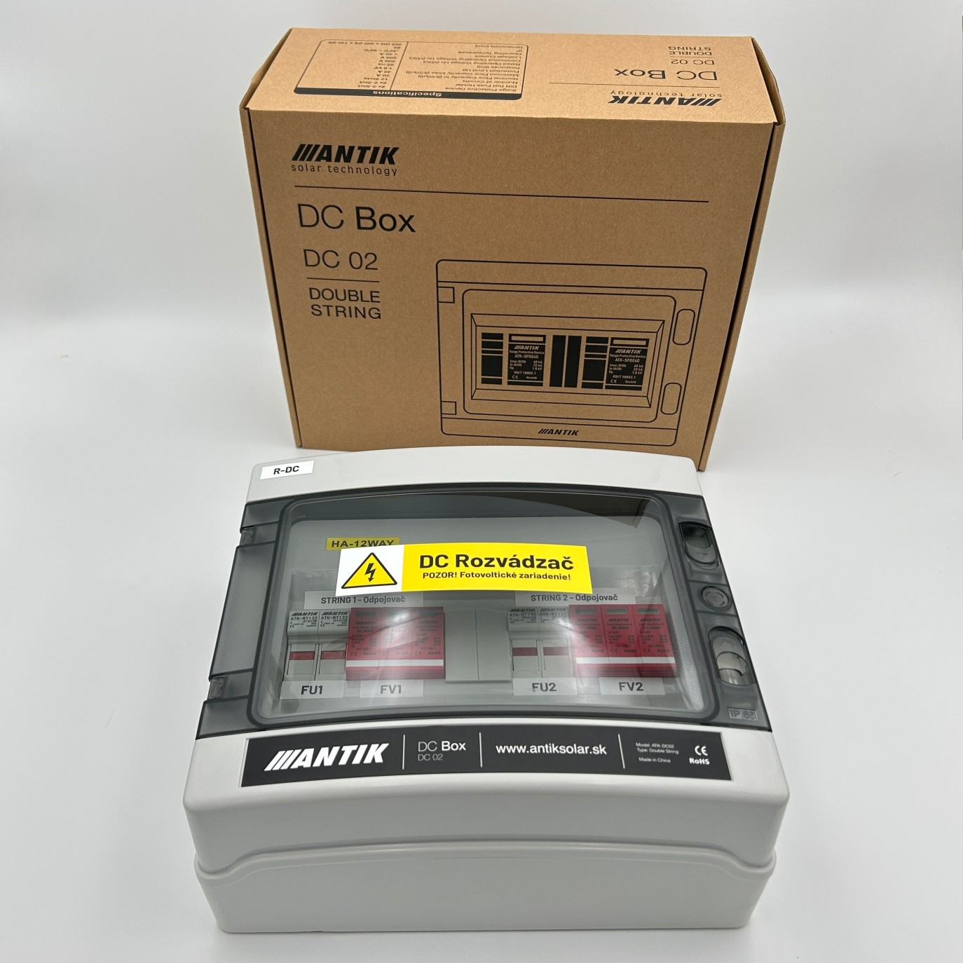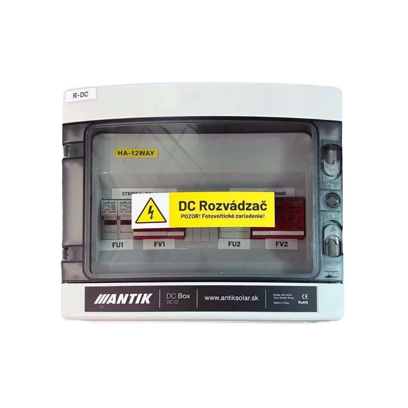 ANTIK DC BOX 2 distribution box with 1000V surge protection for 2 strings of photovoltaic panels is an excellent choice for a variety of applications in small and medium-sized businesses as well as home installations. Thanks to its high durability, advanced protection features and installation flexibility, it provides a reliable and efficient solution for a wide range of applications, ensuring maximum safety and performance of photovoltaic systems.