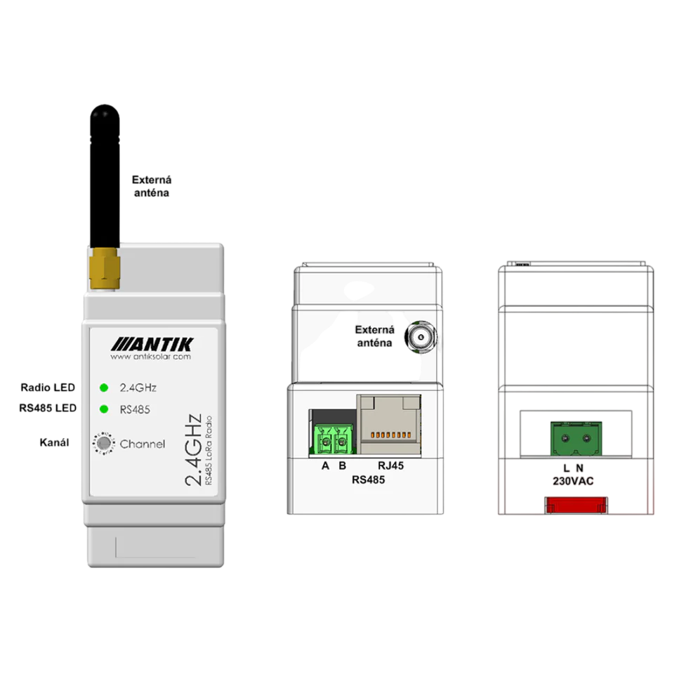Using a more powerful antenna ensures more stable data transmission and reduces the risk of communication failures when transmitting data from the RS485 bus via 2.4 GHz LoRa modulation.
