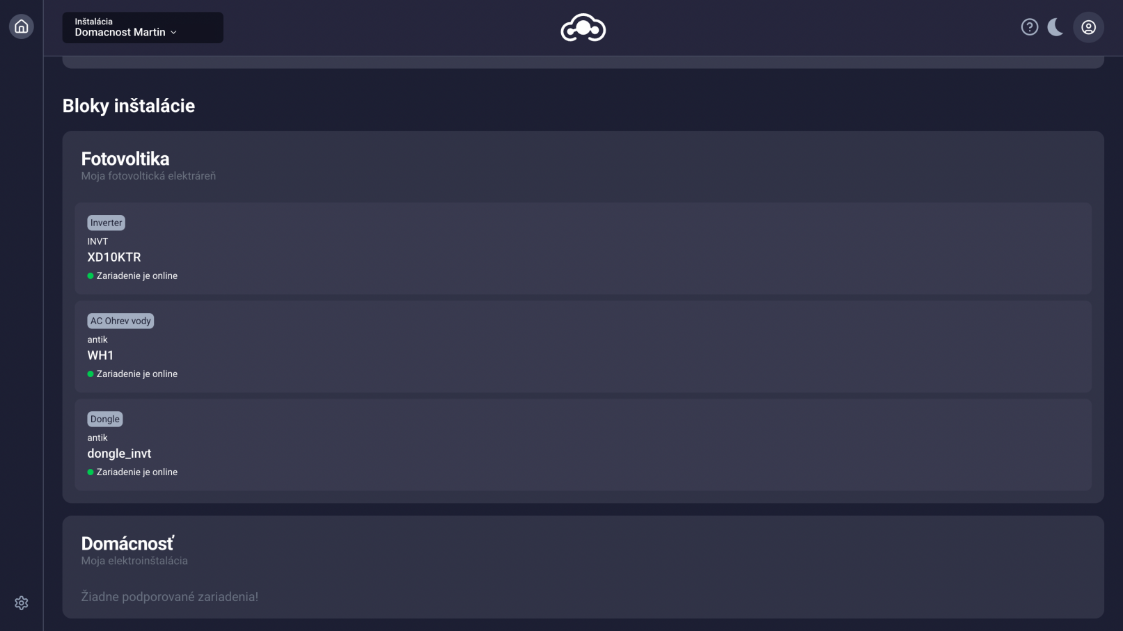 Antik Cloud poskytuje detailný prehľad o výrobe, spotrebe a distribúcii energie v reálnom čase, čím umožňuje presné sledovanie a vyhodnocovanie energetických tokov. Používateľ okamžite vidí efektivitu systému a miesta potenciálnych strát, čo umožňuje včasné zásahy a optimalizáciu prevádzky.