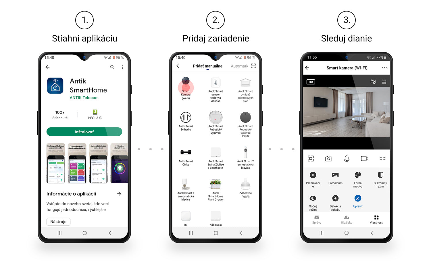 Aplikácia ANTIK SmartHome®, vám umožní plynule prehrávať, pozastavovať, pretočiť a analyzovať nahrané videozáznamy, čím vám poskytne maximálnu kontrolu a pohodlie pri sledovaní prichádzajúcich návštev a očakávaných balíkov.