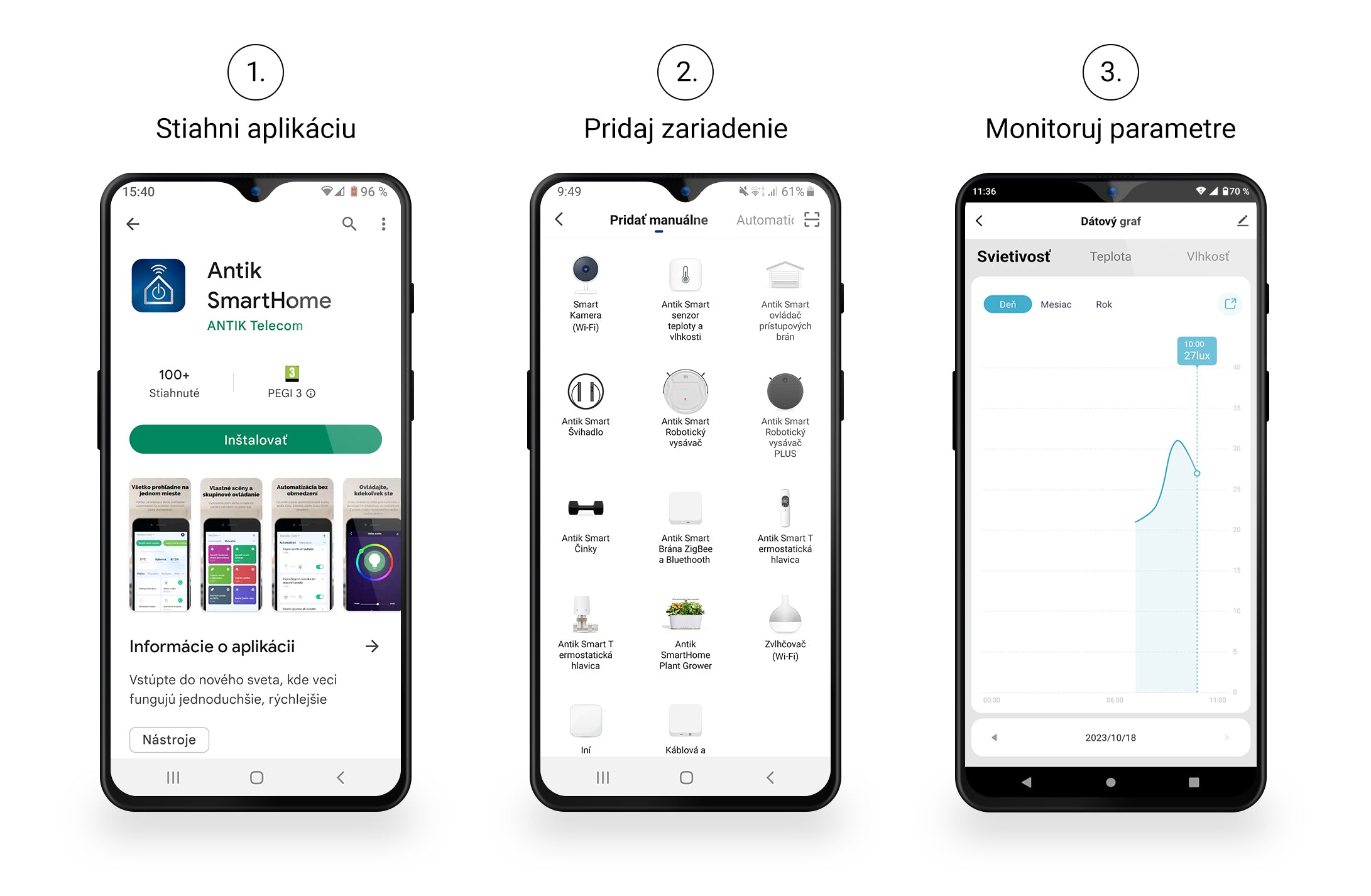 Nastavte si personalizované prahové hodnoty pre každý parameter a dostávajte včasné upozornenia pri zmene podmienok. Získajte okamžitý prístup k aktuálnym a historickým údajom prostredníctvom intuitívnej aplikácie Antik SmartHome®.
