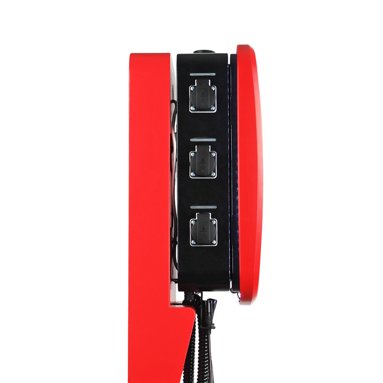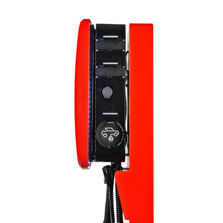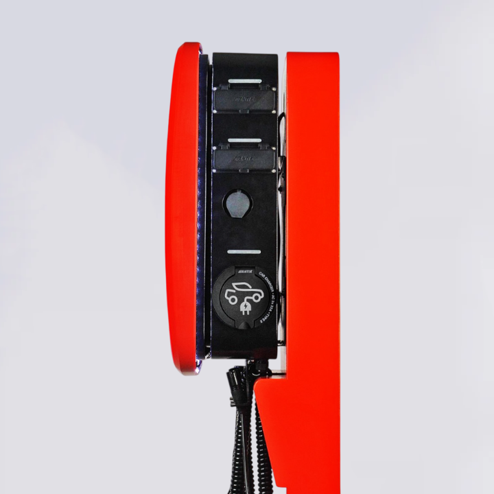 Obsahuje zásuvku Type 2 s výkonom 22 kW AC pre elektromobily, dva sloty na priame nabíjanie powerbaniek bez potreby kábla a prehľadné rozhranie s OLED displejom a LED indikátormi, ktoré zaisťujú jednoduchú kontrolu a správu zariadenia.