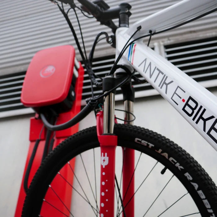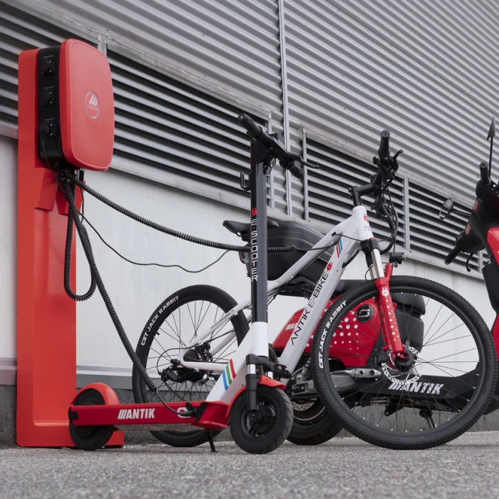 ANTIK Wallbox má 1× Type 2 zásuvku pre elektromobily, 3× 230 V zásuvky pre skútre, 3× 42 V výstupy pre e-bicykle a kolobežky a 2× USB sloty na nabíjanie menších zariadení.