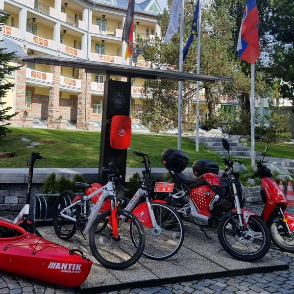 Obsahuje 230 V zásuvky pre elektrické skútre alebo iné zariadenia (napr. kosačka, vysávač) a na spodnej strane 42 V výstupy špeciálne navrhnuté pre e-bicykle a kolobežky. Vďaka tomu je nabíjanie rôznych druhov vozidiel a zariadení sústredené na jednom mieste.
