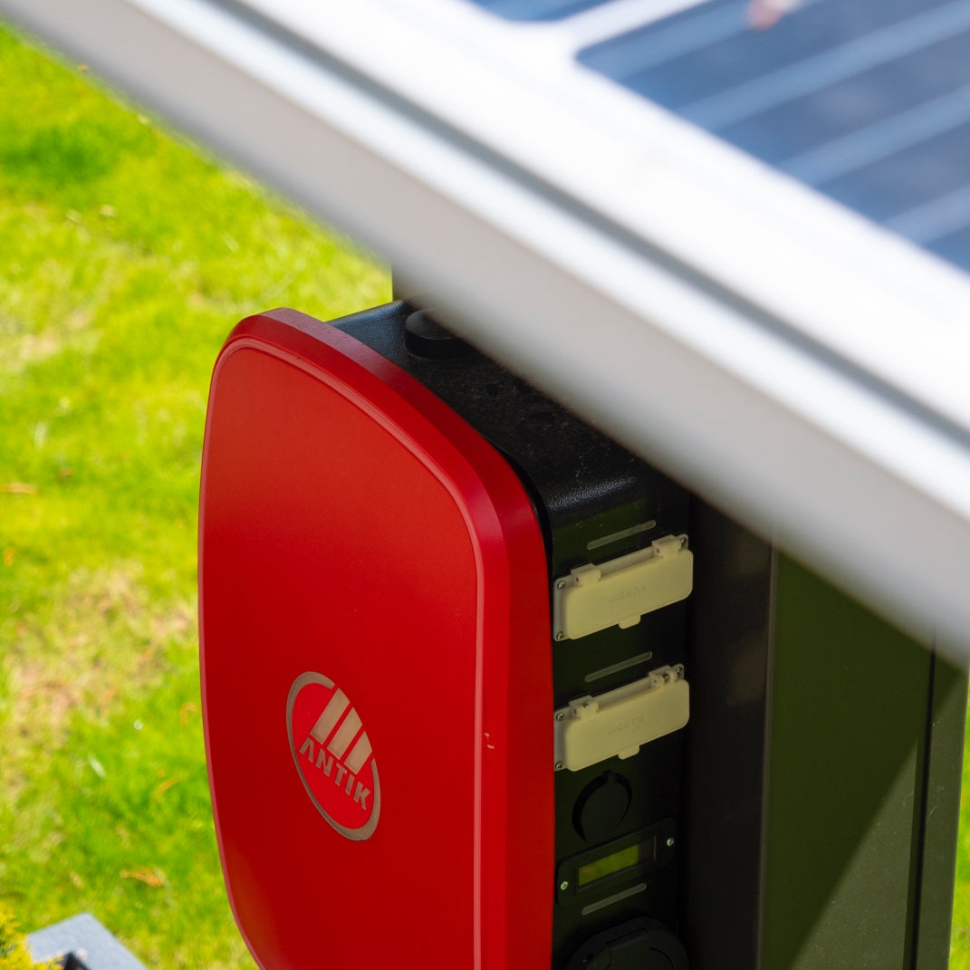 ANTIK WallBox Sharing AC 22 kW je navrhnutý tak, aby dokázal spolupracovať aj s ostrovnými fotovoltickými systémami. Vďaka inteligentnému riadeniu monitoruje výkon solárnych panelov, kapacitu batérie a spotrebu v reálnom čase. Na základe týchto údajov povolí nabíjanie jednotlivých výstupov tak, aby nedošlo k preťaženiu systému. Integrácia cez rozhranie RS485 umožňuje plynulé prepojenie so solárnou infraštruktúrou a zvyšuje efektivitu využívania obnoviteľných zdrojov.