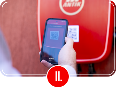 Načítajte QR kód priamo na wallboxe pomocou mobilnej aplikácie ANTIK Smart. V aplikácii si vyberte konkrétny konektor, ktorý chcete použiť, a potvrďte spustenie nabíjania. Celý proces je rýchly a bezpečný, všetko prebieha prehľadne v rozhraní aplikácie.