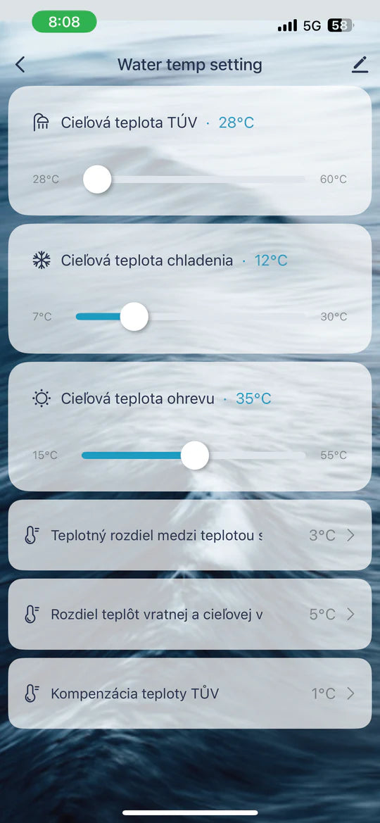 - Nastavenie cieľovej teploty vody - TÚV, chladenie, vykurovanie — plynule nastaviteľné