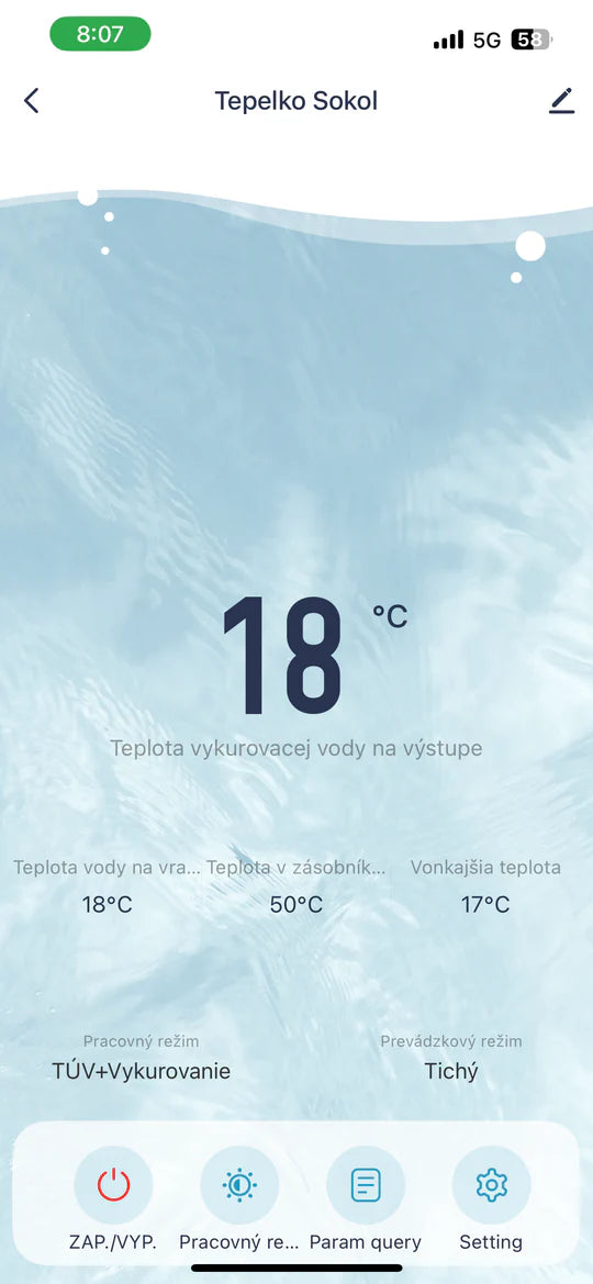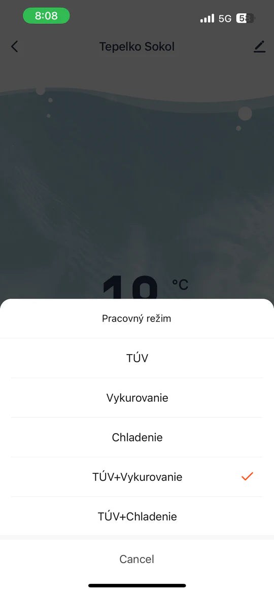 | Pracovný režim | TÚV, Vykurovanie, Chladenie, TÚV+Vykurovanie, TÚV+Chladenie | Nastavuje funkciu, ktorú má tepelné čerpadlo vykonávať. |