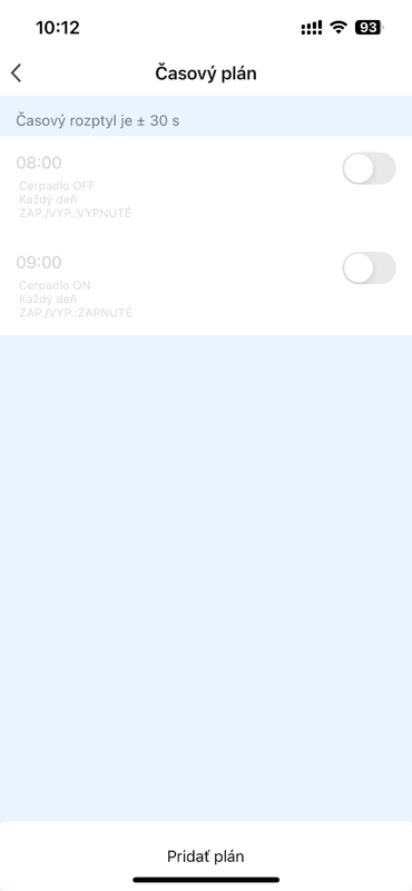 - Plánované zapnutie čerpadla – napríklad každý deň o 09:00.